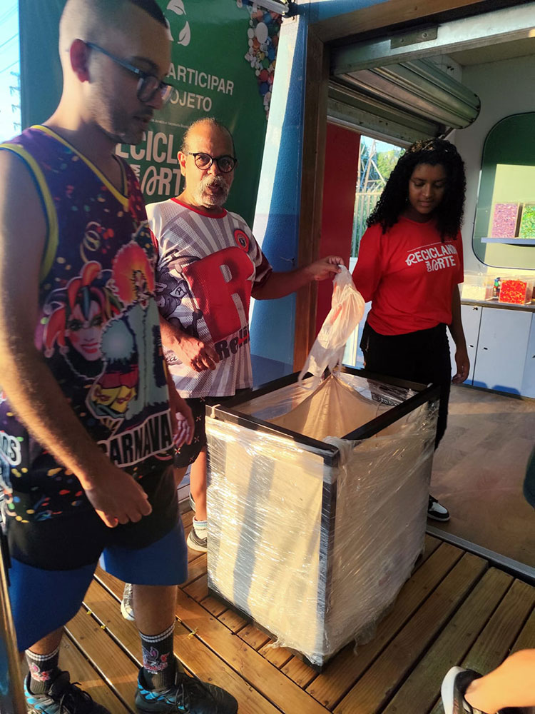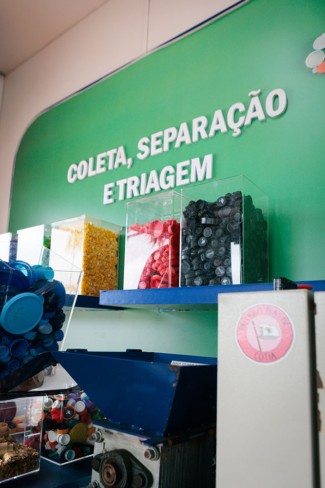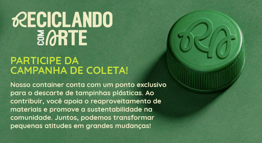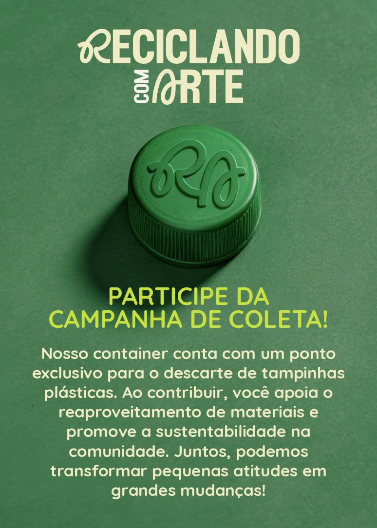 Com uma campanha de coleta, o container do projeto conta com um recipiente destinado ao descarte de tampinhas.
