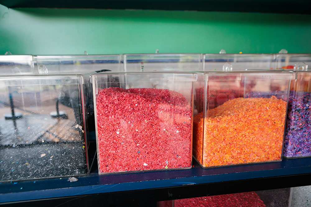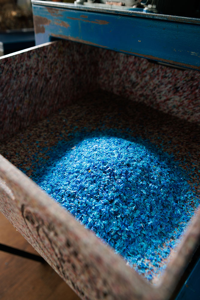 O processo de trituração é para facilitar e otimizar o derretimento do plástico. Além disso é uma forma das cooperativas reduzirem o volume deste item e gerar renda através do material já adaptado para trabalhos específicos. É importante triturar o plástico por tipo e separá-lo por cores para facilitar o uso em cada máquina do processo.